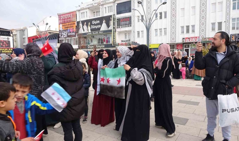 Yozgat’ın Sorgun ilçesinde yaşayan Suriyeliler, Esed rejiminin düşüşünü kutladı.