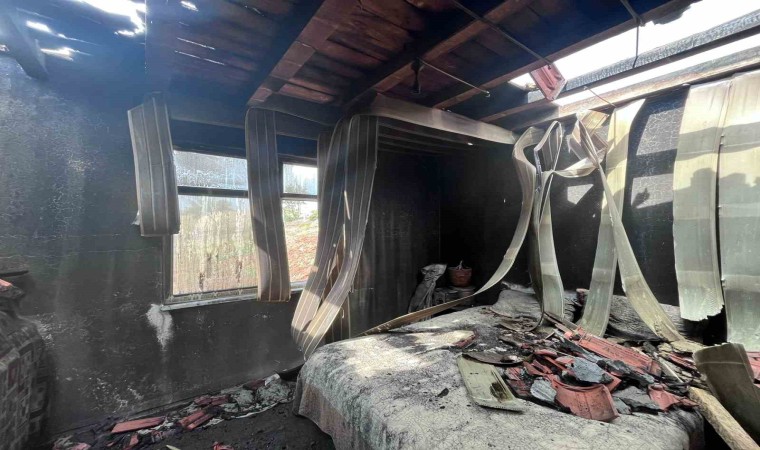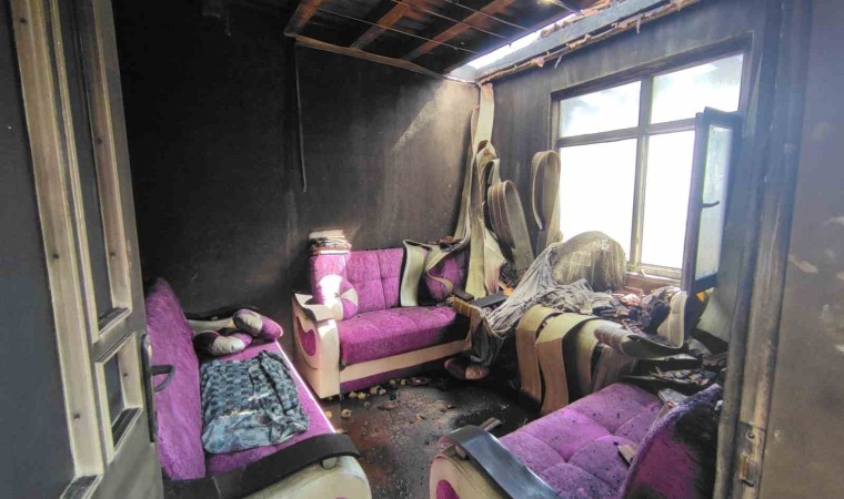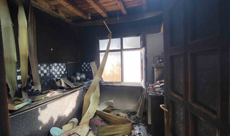 Ekiplerin müdahalesiyle söndürülen yangın sonrasında ev kullanılamaz hale geldi.