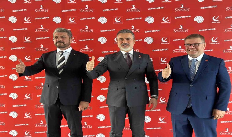 Suat Kılıç, basın toplantısının ardından Samsun Büyükşehir Belediyesi adayı Adem Güney ile poz verdi.