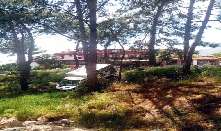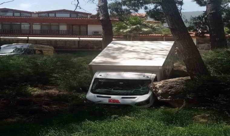 Muğla’nın Ula ilçesi Akyaka Mahallesindeki bir zincir markete yük indirmek için gelen ve el freni çekili olan kamyonet durduğu alandan hareket ederek ormanlık alana kaydı.