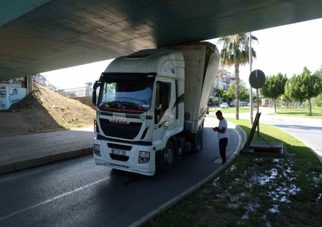 Yüksekliği hesap edemeyen tır sürücüsü alt geçitte sıkıştı