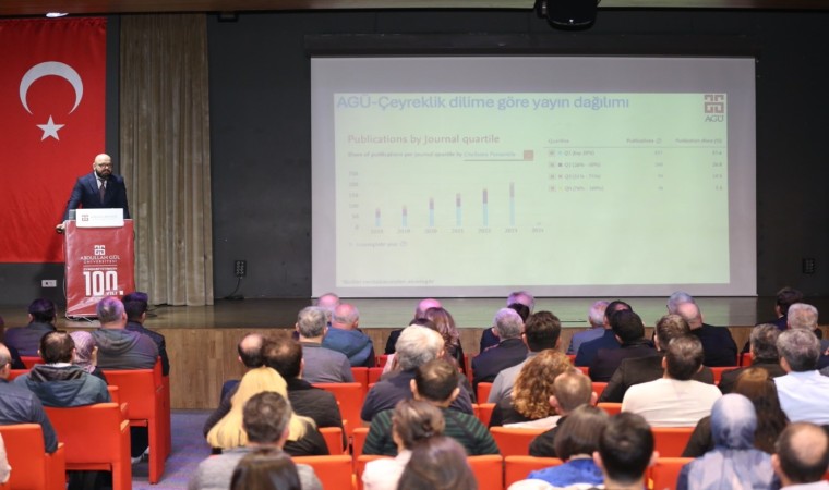 Mühendislik Fakültesi Dekanı Prof. Dr. Evren Mutlugün de AGÜ’nün araştırma faaliyetleri ile performans analizini içeren bir sunum yaptı.