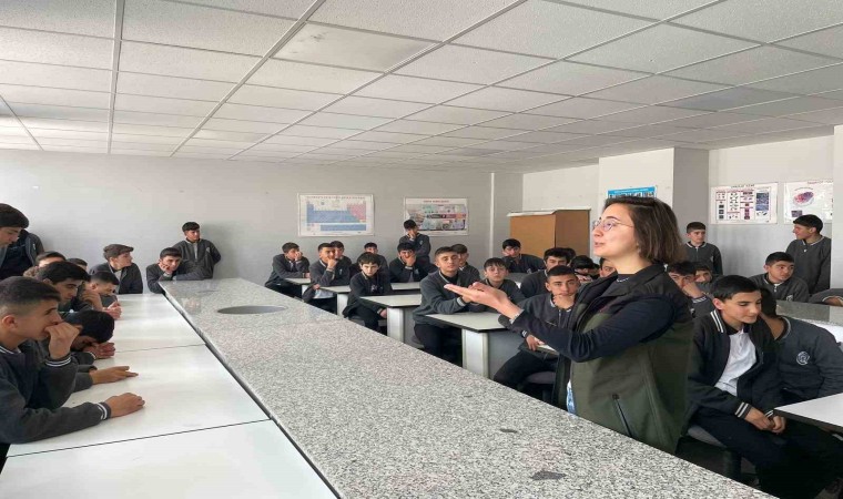 Hakkari’nin Yüksekova İlçe Tarım ve Orman Müdürlüğü ekipleri, ziyaret ettikleri okullarda öğrencilere tarım konusunda bilgilendirme yapıyor.