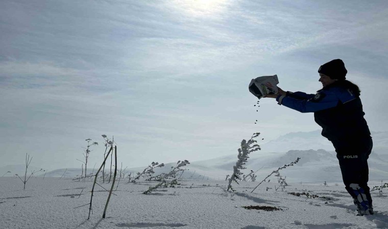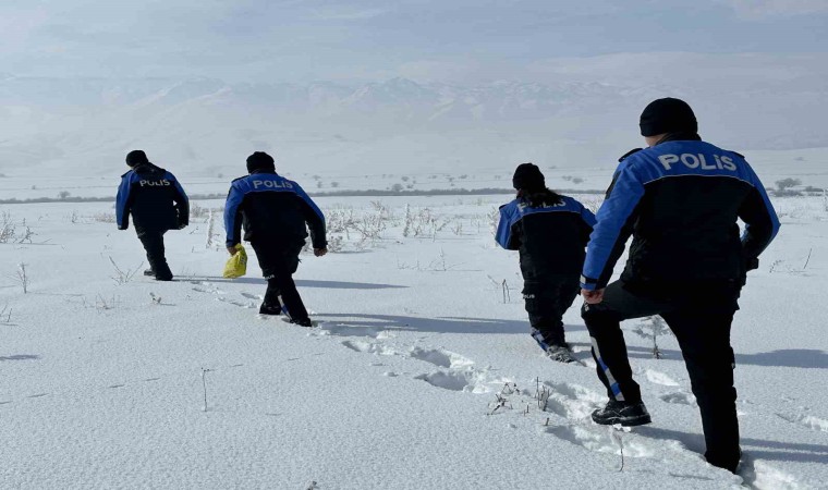 Hakkari’nin Yüksekova İlçe Emniyet Müdürlüğünde görevli polisler, kar yağışından dolayı yiyecek bulmakta zorlanan hayvanlar için yarım metreyi bulan karda yürüyerek yemleme çalışması yaptı.