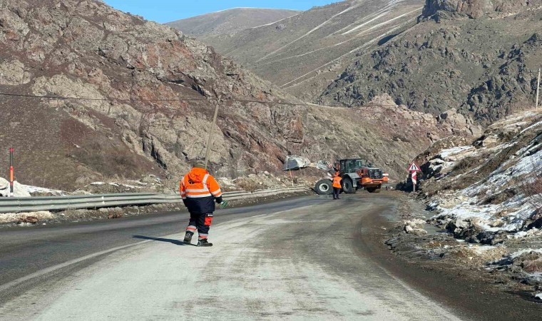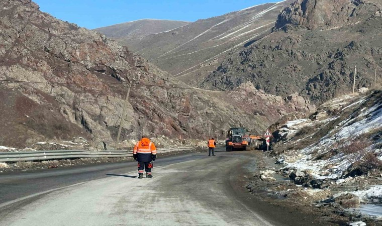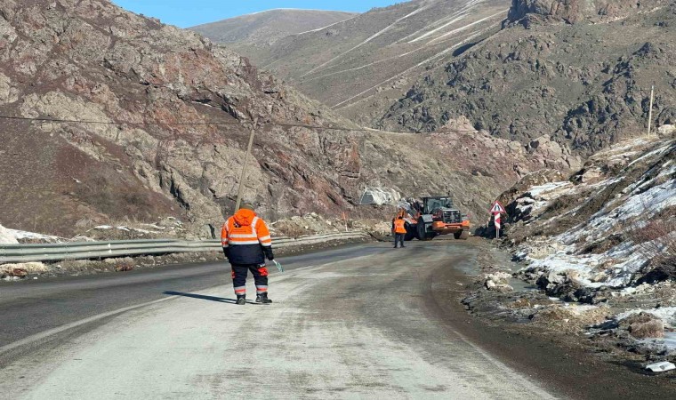 Yüksekova-Van kara yolu üzerindeki Yeni Köprü bölgesinde dağdan düşen kaya parçaları temizlendi.