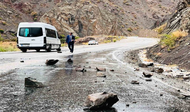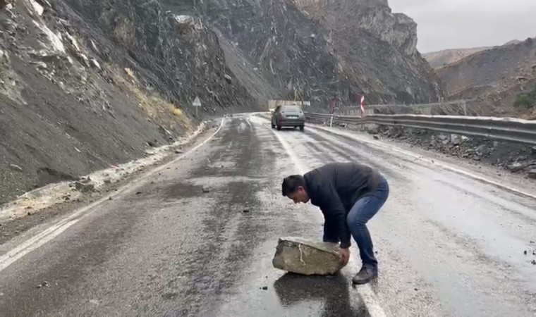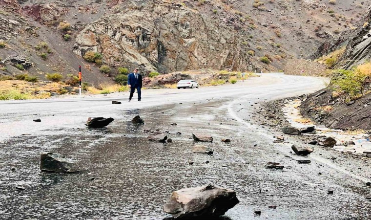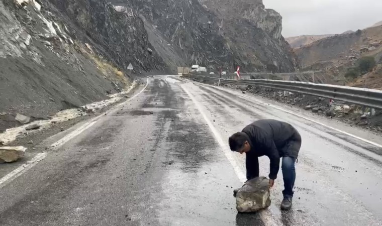 Dün başlayan ve aralıklarla devam eden yağmur, bugün de kuvvetli şekilde etkili olmayı sürdürüyor. Yağışlardan dolayı zeminin yumuşaması sonucu Yüksekova-Van kara yoluna Yeni Köprü bölgesinde kaya parçaları düştü. Şans eseri herhangi bir yaralanma ve maddi hasar meydana gelmezken, bazı sürücüler ise araçlarını yol kenarına bırakarak kaya parçalarını temizledi.