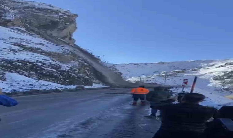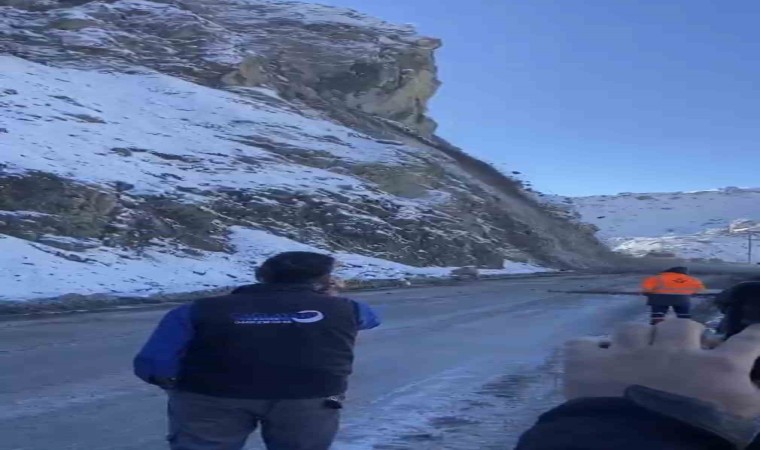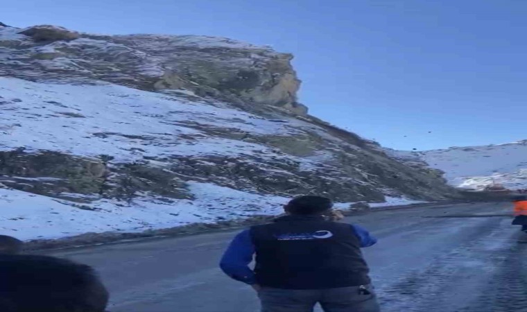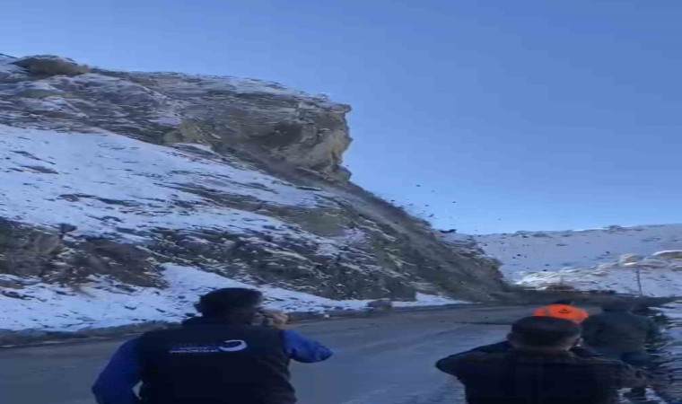 Hakkari’nin Yüksekova-Van karayolunda bulunan Yeniköprü’de dağdan kopan kaya parçaları saniye saniye kameraya yansıdı.