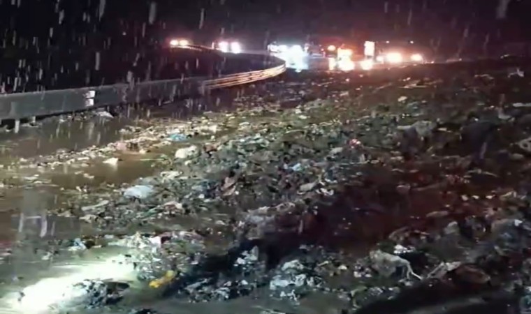 Yüksekova’da 3 gündür belli aralıklarla devam eden sağanak yağış, hayatı olumsuz etkilemeye devam ediyor. Edinilen bilgilere göre aşırı yağış sonucu çöplük mevkiinde heyelan meydana geldi. Sel suları nedeniyle önceki senelerde çöplük olarak kullanılan dağ yamacındaki toprak kütlesi ve çöp yığınları yola savruldu. Heyelan nedeniyle yol ulaşıma kapandı, birçok araç mahsur kaldı.