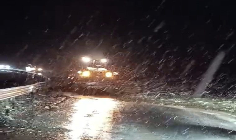 Ekipler kar yağışı altında yolu ulaşıma açmak için çalışma başlattı.
