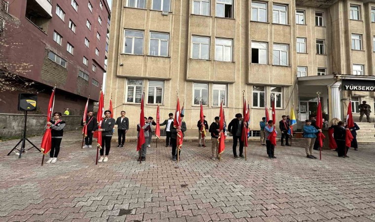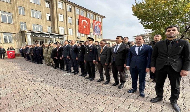 10 Kasım Atatürk’ü Anma Günü dolayısıyla Yüksekova Belediyesinin önünde düzenlenen tören, Yüksekova Kaymakamı ve Belediye Başkan Vekili Ömer Çimşit’in Atatürk heykeline çelenk sunmasıyla başladı. Saatler 09.05’i göstermesiyle birlikte siren eşliğinde 2 dakikalık saygı duruşunda bulunulmasının ardından İstiklal Marşı okundu. Çelenk programından sonra Yüksekova Kız İmam Hatip Anadolu Lisesinde anma programının devam edeceği belirtildi.