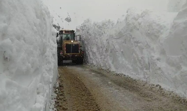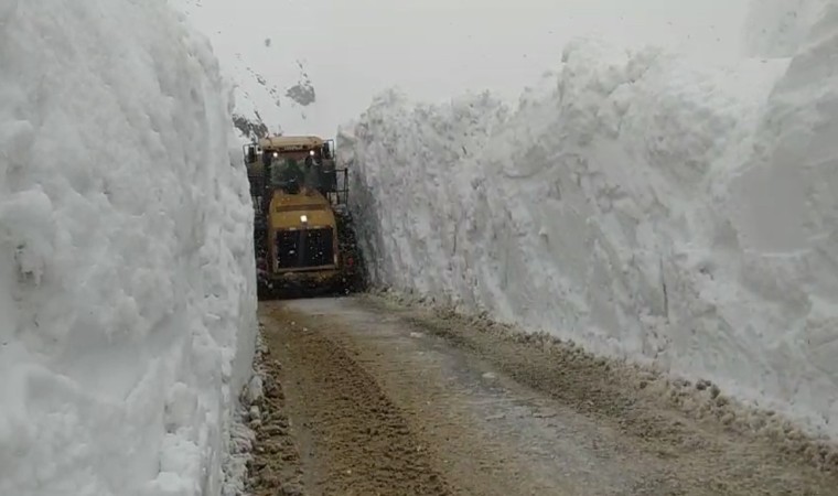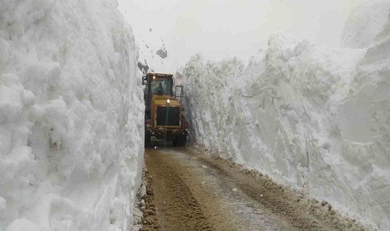 Hakkari’nin Yüksekova ilçesinde ekiplerin 5 metreyi aşan kar tünellerinde zorlu mücadelesi aralıksız sürüyor.