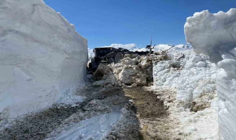 Hakkari’nin Yüksekova ilçesinde nisan ayına rağmen Doski Vadisi’nde yer alan Rahmo ve Yıldız üs bölgelerinin yolunda 5 metreyi bulan karda yol açma çalışmaları devam ediyor.