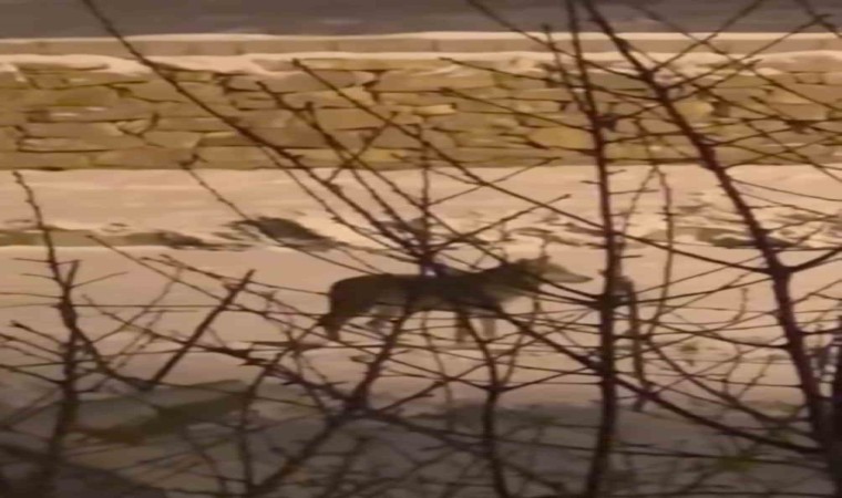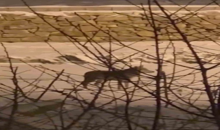 Hakkari’nin Yüksekova ilçesinde aç kalan kurt ilçe merkezine indi, o anlar cep telefonu kamerasına yansıdı.