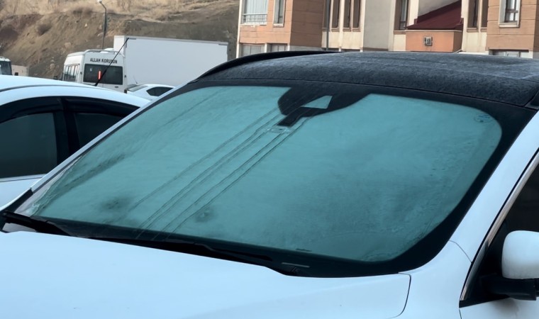 Hakkari’nin Yüksekova ilçesinde soğuk havanın etkisiyle araçların camları buz tuttu.