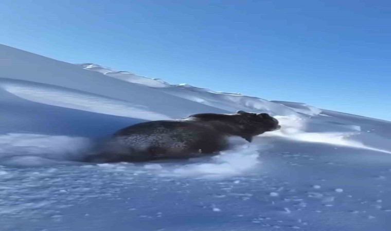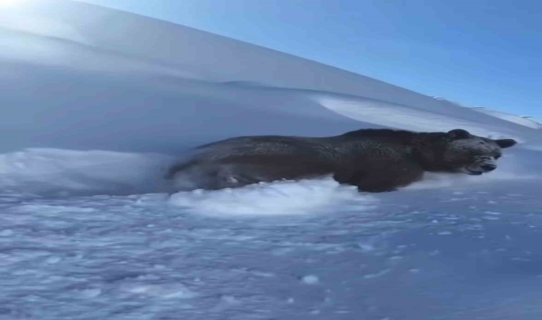 Geçen hafta bölgede 4 gün boyunca etkili olan yoğun kar yağışı hayatı olumsuz etkilerken ilçe merkezinde kar kalınlığı yarım metre, yüksek kesimlerde ise 1 metreyi buldu. Özellikle yüksek kesimlerde kar yağışı adeta hayatı durma noktasına getirdi. Yüksekova Vangölü Elektrik Dağıtım AŞ’ye (VEDAŞ) bağlı arıza ekipleri Dağlıca köyüne gittikleri sırada bir ayının kar içinde ilerlediğini görerek o anları kayıt altına aldı. Dev aynın kış uykusundan uyandığını sandıklarını söyleyen ekipler, “Kesinlikle böyle birşey yok. Biz de arızaya gidiyorduk. O sırada dev ayının kardan yürüdüğünü gördük hemen kayıt altına aldık. Ayının o haline baya şaşırdık” ifadelerini kullandı.