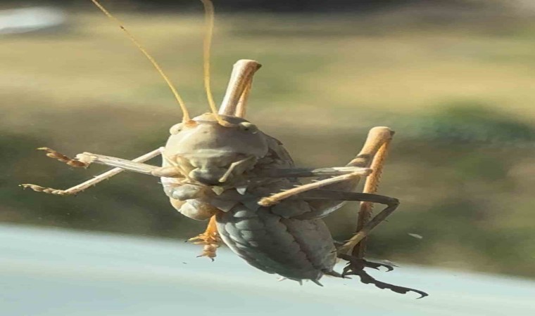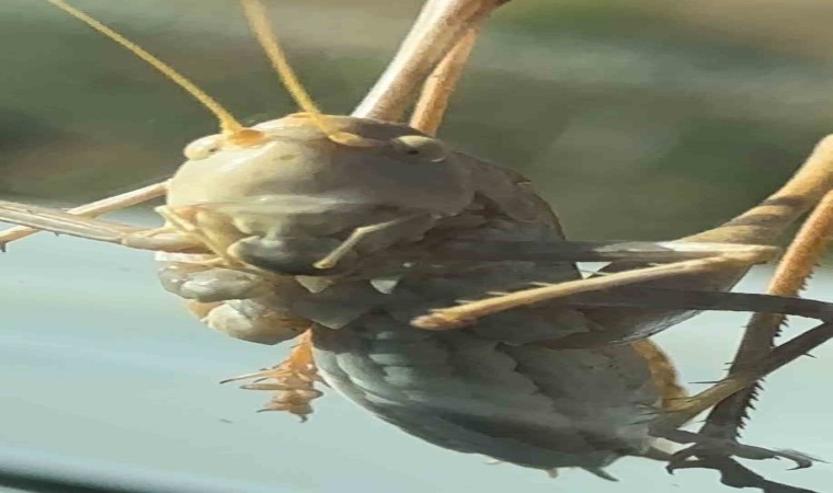 Hakkari’nin Yüksekova ilçesinde görüntülen çekirge, büyüklüğüyle dikkat çekti.