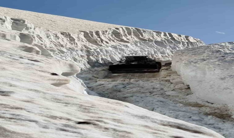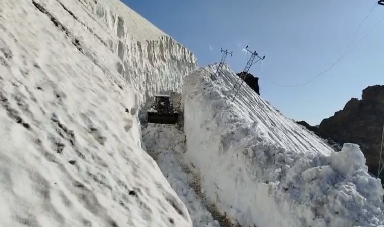 Hakkari’nin Yüksekova ilçesindeki 3 bin 500 rakımda yer alan İkiyaka Dağlarında haziran ayına rağmen kalınlığı 8 metreyi bulan karda yürütülen yol açma çalışmaları devam ediyor.