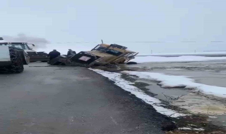 2 gün önce başlayan yoğun yağışlar, ilçede hayatı olumsuz yönde etkiledi. Bugün sabah saatlerinde yol açma çalışmaları için yola çıkan iş makinesi, ilçenin Altınoluk köyü yakınlarında seyir halinde olduğu sırada yol kenarındaki boşluğa düştü. Düştüğü yerden çıkamayan iş makinesi operatörü, hemen ekiplerden yardım istedi.