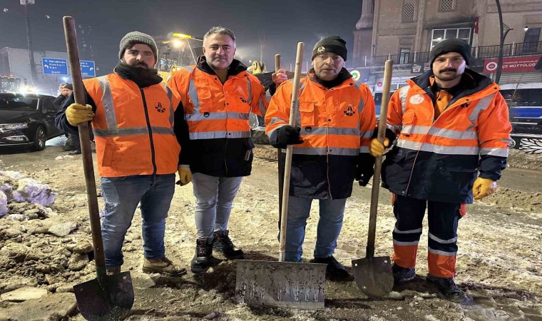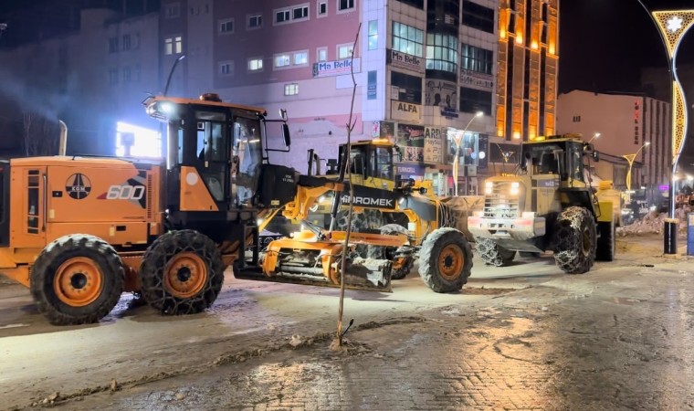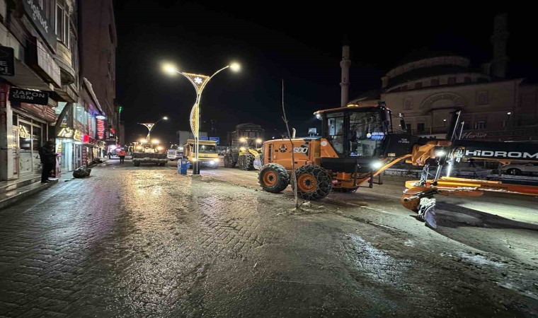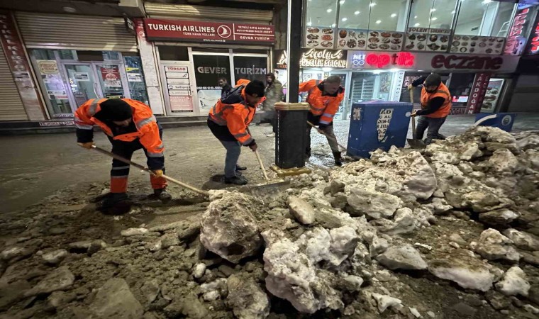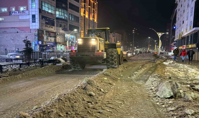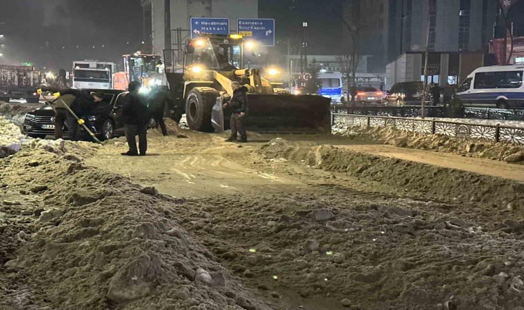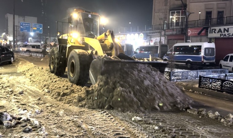 İlçenin dört bir yanında karla mücadele çalışması yapan ekipler, akşam saatlerinde de ilçenin en işlek caddelerinde birinken karları temizlemeye başladı. Ziraat Bankası önünde başlayan ekipler, Şemdinli yolunun ilçe çıkışına kadar sağlı sollu kar ve buz kütlelerini temizledi. Araçların giremediği yerlere ise ekipler ellerine aldığı küreklerle temizledi.