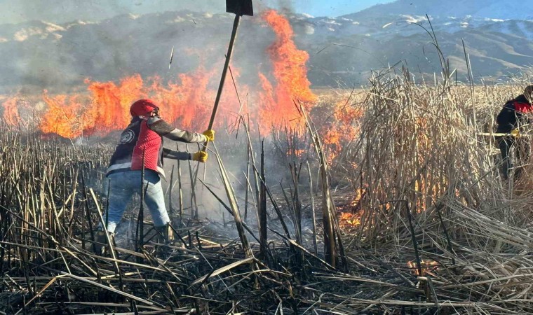 Hakkari’nin Yüksekova ilçesinde birçok kuş türünün yaşadığı Nehil Sazlığı alev alev yanıyor. Bataklıktan dolayı araçlar giremezken, itfaiye ekipler yangın alanına giderek küreklerle söndürmeye çalıştılar.