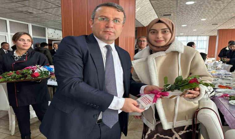 Daha sonra Yüksekova Kaymakam Ömer Çimşit masaları tek tek gezerek öğretmenlere gül dağıtarak günlerini kutladı.