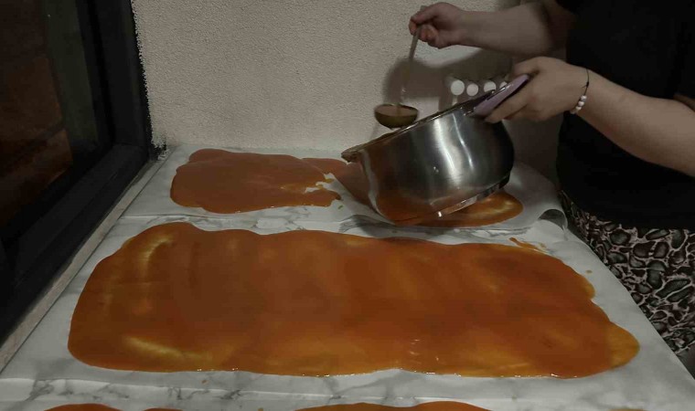 "Bu meyveler büyük zahmetlerle buraya kadar geliyor" diyen ev kadını Yasemin Baran, “Her sene olduğu gibi kış hazırlığı yapıyoruz. Kış aylarında tüketmek için çeşitli gıdalar hazırlıyoruz ve saklıyoruz. Bu dönemde bahçeden getirdiğimiz kayısıları evde yıkadıktan sonra parçalara ayırarak kaynatıyoruz. Su haline gelin kayısıları daha sonra pestile dönüştürüyoruz. Buna doğal pestil diyebiliriz” dedi.