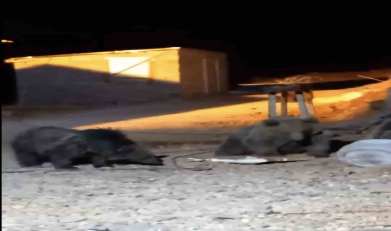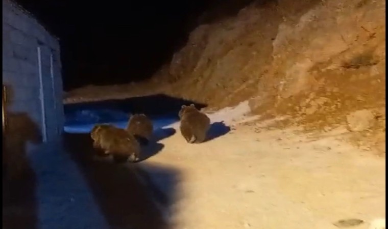 Yüksekova’ya 56 kilometre uzaklıkta bulunan Dağlıca köyündeki yol şantiye alanı ayıların uğrak mekanı oldu. Birçok gece şantiyeye inen aç ayılar, şantiyede bulunan çöpleri karıştırarak karınlarını doyurmaya çalışıyor. Şantiyede çalışan işçiler ise ayılar için çoğu zaman çevreye yiyecek bırakıyor. Ayıların mesken tuttuğu şantiyeyi gece 4 ayı ziyaret etti. Çevrede bulunan çöpleri karıştıran ayılar, karnını doyurduktan sonra bölgeden ayrıldı. Yiyecek arayan ayı sürüsü işçiler tarafından cep telefonu kamerası ile görüntülenirken, şantiyede çalışanlar tedirginlik de yaşadı.