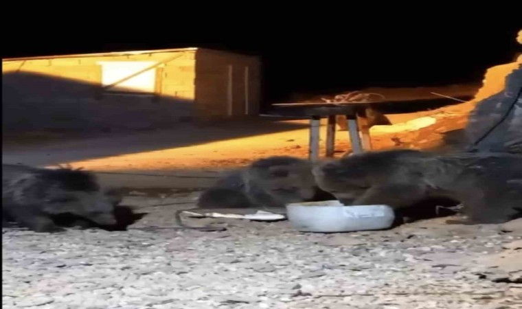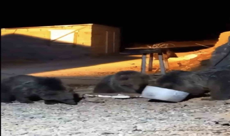 Hakkari’nin Yüksekova ilçesinde şantiyede yiyecek arayan 4 ayı kameralara yansıdı.