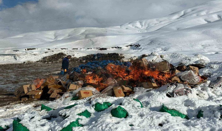 Yüksekova’da bir iş yerinin başvurusu üzerine, depolarında meydana gelen arıza nedeniyle bozulmuş gıdalar tutanak karşılığı zabıta ekiplerine teslim edildi. Daha sonra ilçenin Esendere yolundaki kül dökme noktasına kamyonla getirilen gıda ürünleri, burada yakılarak imha edildi.