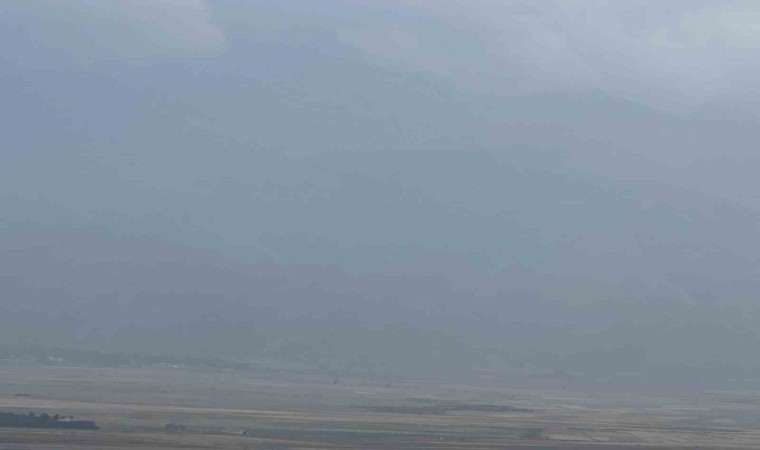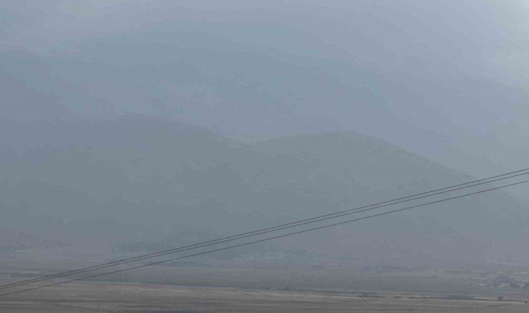Hakkari’nin Yüksekova ilçesinde rüzgarın etkisiyle gelen toz bulutları, yüksek dağları kapladı.