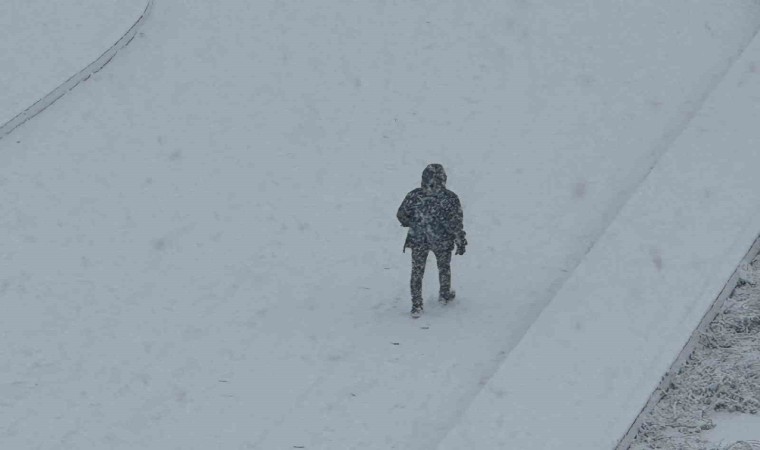 Yoğun kar yağışının olduğu ilçede görüş mesafesi yer yer düştü.