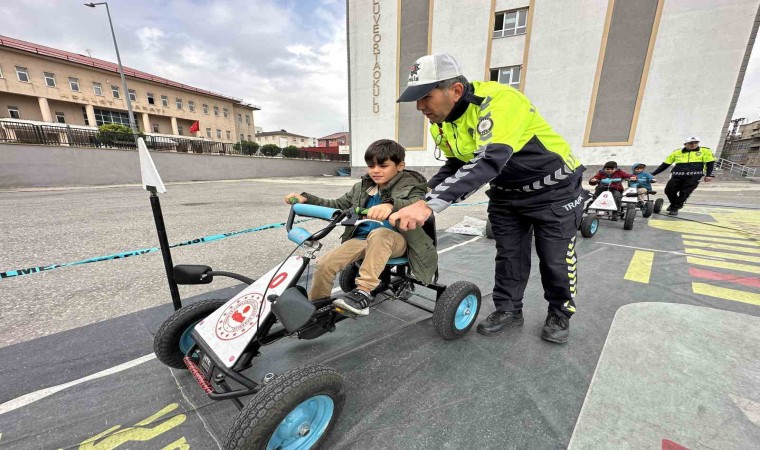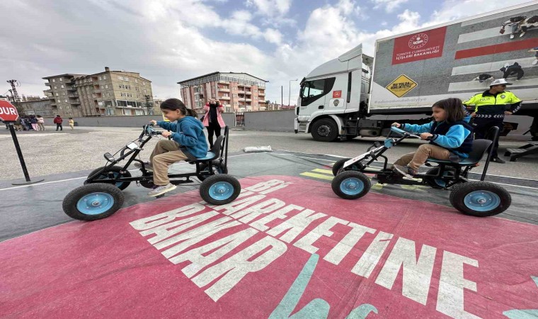 Yüksekova 50. Yıl Ortaokulunun bahçesine park eden tırda, çeşitli okullardan gelen öğrencilere eğitim verildi. Tırın içinde trafik polislerinden eğitim alan öğrenciler, daha sonra bisikletlerle okulun bahçesine kurulan alanda uygulama yaptı.