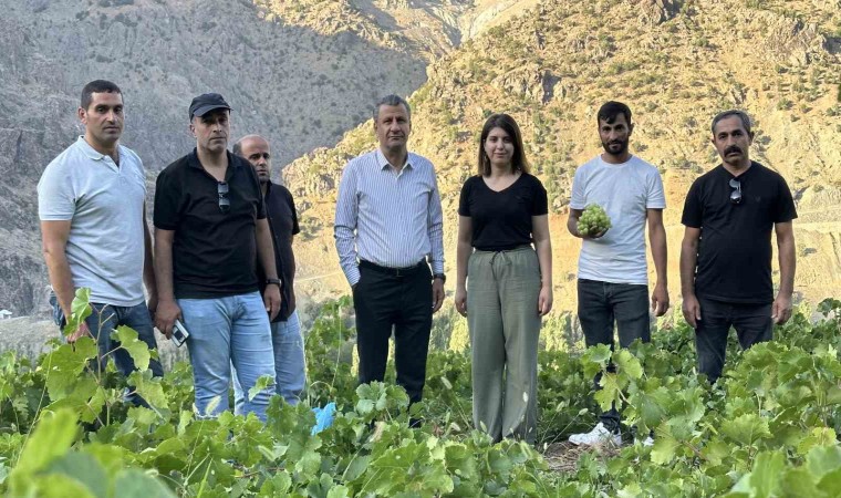 Üzüm bağlarını yerinde inceleyen Yüksekova İlçe Tarım ve Orman Müdürü Mehmet Emin Yiğit ve kurum mühendisleri, bu sene güzel bir verimin olduğunu ve tüm ilçede gelişim olması için çalışmaları sürdüreceklerini belirttiler.