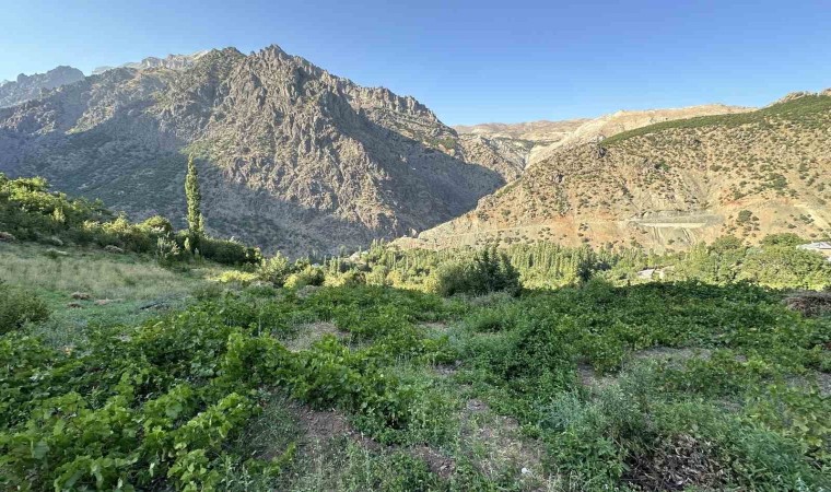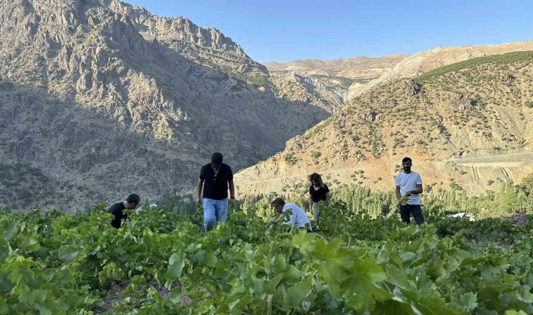 Hakkari’nin Yüksekova ilçesinin Yeşiltaş köyünde her sene yeşeren yerli üzüm bu sene de bereketiyle göz kamaştırdı.