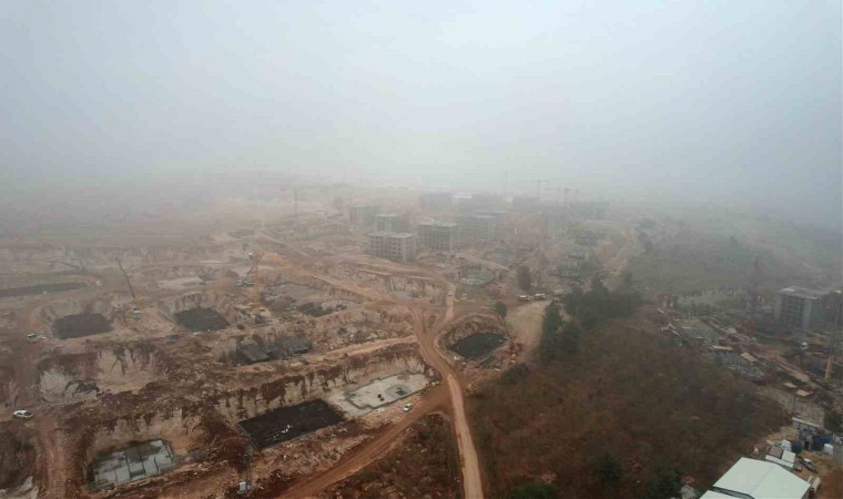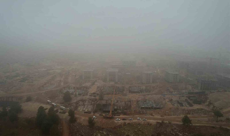 Adıyaman’da sabah saatlerinden itibaren etkili olan sis kentin üzerini kapladı. Yoğun sis özellikle kentin kuzeyindeki Karadağ’ın üst kısmı İndere Bölgesi’nde yapılan kalıcı deprem konutlarını etkisi altına aldı. Kalıcı konutların bulunduğu yerde göz gözü görmedi. Görüş mesafesinin çok düştüğü konutların bulunduğu alanda kartpostallık görüntüler ortaya çıktı. Dron ile konutlar ve sis görüntülendi.