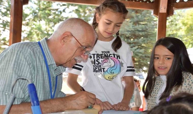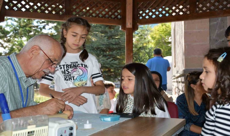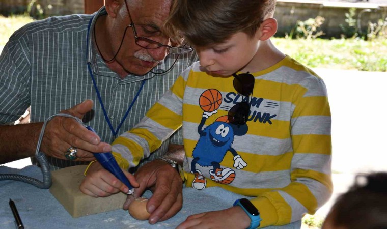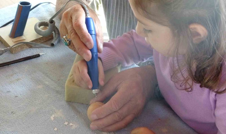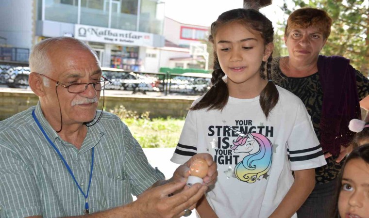 Yumurta kabuğu oyma sanatçısı Hamit Hayran, Ardahan’da çocuklara yumurta kabuğunda delik açma uygulaması yaparak sanatını sergiledi.