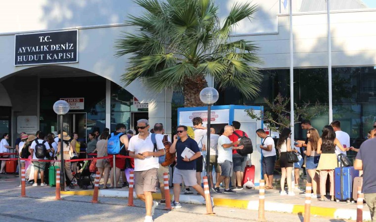 İstanbul, İzmir, Bursa, Ankara, Muğla, Balıkesir, Manisa ve Kocaeli gibi büyükşehirlerden gelen tatilciler, Ayvalık Deniz Hudut Kapısı önünde kuyruklar oluşturdu.