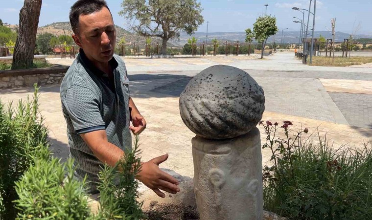 Yunus Emre’nin mezarının Kula’da olduğuna yönelik en büyük kanıtlardan bir tanesinin de mezar taşının üzerinde yer alan balta ve anahtar tasviri olduğunu belirten Kahraman, "Yunus Emre mezarının baş kısmındaki taş Emre köyü halkı tarafından dikilmiş. Bu bölgede Türkmenlerden önce Lidya, Roma ve Bizans İmparatorluğu hüküm sürmüş. Onlardan kalan ve üzerinde savaş baltası yer alan bir taşı Yunus Emre’nin mezarına getirerek, mezar taşı olarak kullanmışlar. Bu taşın üzerindeki balta çift başlıklı bir baltadır. Normalde bu asker baltasıdır ama bunu Emre köyünün halkı simge olarak kullanmışlar. Yunus Emre dergâhta odunculuk yapıyordu. Onu vurgulamak adına bu balta tasvirli taşı baş ucuna dikmişler. Ayrıca baş sarığı da taşın üzerinde yer alıyor. Ayak ucundaki taş da yine Roma döneminden kalma bir taştır. Köyümüzde yaşamış atalarımız, taşın üzerindeki tasvirleri orman motifi ya da dergâh anahtarlarını vurguladığını söylüyor" dedi.