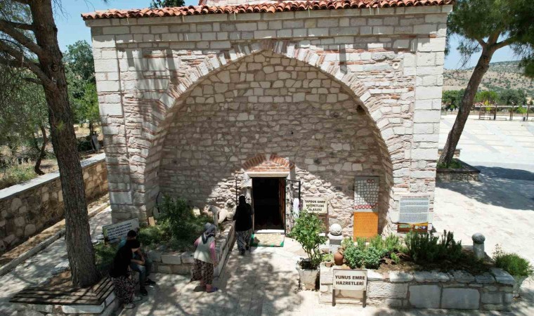 Büyük mutasavvıf ve halk şairi Yunus Emre ile hocası Tapduk Emre’nin kabirlerinin bulunduğuna inanılan Manisa’nın Kula ilçesindeki türbe, her yıl binlerce ziyaretçiyi ağırlamaya devam ediyor. Adını Yunus Emre’den alan, yaklaşık 120 nüfusa sahip Emre Mahallesi’nde bulunan Yunus Emre ve Tapduk Emre’nin kabirlerinin yer aldığı türbe, mimarisiyle de dikkat çekiyor. Nerede, hangi yılda doğduğu kesin bilinmeyen, kimi kaynaklarda Anadolu’ya Doğu’dan gelen Türk oymaklarından birine bağlı olup, 1238 yılında doğduğu söylenen Yunus Emre’nin 1320 yılında da öldüğü rivayet edilir. Anadolu’nun birçok şehrinde türbe ve makamı olan Yunus Emre’nin gerçek mezarının da nerede olduğuna ilişkin günümüzde de net bir bilgi bulunmuyor. Yunus Emre’nin türbe ve makamları arasında adı geçen Manisa’nın Kula ilçesindeki Yunus Emre ve Tapduk Emre Türbesi’nde Kula Belediyesi personeli olarak rehberlik yapan ve aynı zamanda türbe avlusunda mezarı bulunan Hatice Kahraman’ın 5. kuşak torunu Süleyman Kahraman, türbenin tarihi geçmişi ve Yunus Emre’nin gerçek mezarının neden burada olduğuna inandıklarına ilişkin kanıtlarını İHA muhabirine anlattı. Süleyman Kahraman, "Tapduk Emre, Yunus Emre, Hacı Bektaş-ı Veli, Somuncu Baba, Sarı Saltuk gibi Anadolu erenleri Hoca Ahmet Yesevi’ye bağlıdır. Bu erenler Moğol istilası sebebiyle Orta Asya’dan Anadolu’ya göçmüşlerdir. İçlerinden Tapduk Emre de Anadolu’ya geldiğinde Saruhanoğulları Beyliği’ne sığınır ve o sancak beyi altında ömrünü tamamlar. Tapduk Emre iyi bir duvar ustası olduğu için Emre köyüne geldiğinde burada hamam ile birlikte tekke, medrese inşa ediyor. Şu anda günümüze kadar bu hamam bozulmadan geldi. Hala çeşmeleri akar. Ayrıca dergâhın şadırvanı da günümüze kadar ulaşmıştır" dedi.