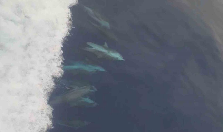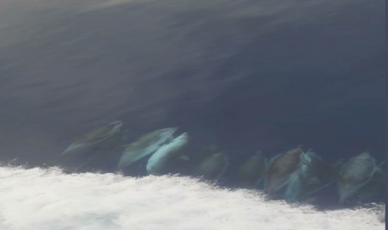İnsanlara yakınlığı ile bilinen yunuslar çoğu zaman gemilere eşlik ederken veya suyun üstünde insanlara yakın bir bölgede zıplarken kameralara takılıyor. İzmir’de kuru yük gemisi Çeşme açıklarından geçtiği sırada bu kez büyük bir yunus sürüsü geminin pruva kısmından görüntülendi. Gemi ile aynı hızda giden yunus sürüsü eşsiz görüntüler oluşturdu.