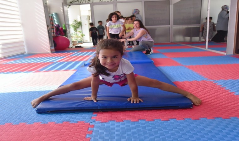 Yunusemre Belediyespor’un yaz spor okullarında cimnastik branşı en çok ilgi gösterilen branşların başında geliyor. Kurslara akın eden çocuklar hem eğleniyor hem de öğreniyor.