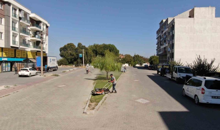 Yunusemre Belediyesi ekipleri, Muradiye Mahallesi Cumhuriyet Caddesi üzerindeki yeşil alanlarda çim biçme ve bakım çalışması yaptı.