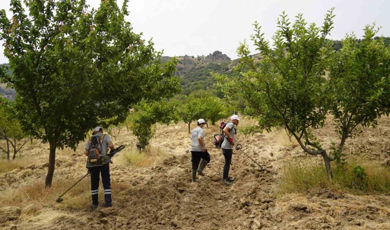 Yunusemre Belediyesi’nin Yuntdağı’nda alternatif ürün çeşitliliğini arttırmak amacıyla Tarımsal Hizmetler Müdürlüğü bünyesinde kurduğu organik meyve bahçesinde temizleme ve budama çalışması yapılıyor.
