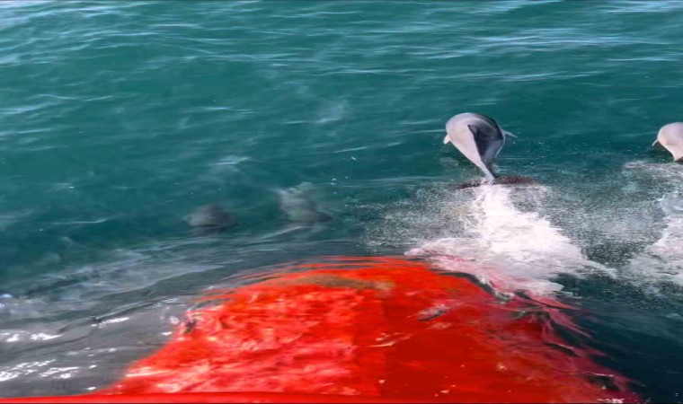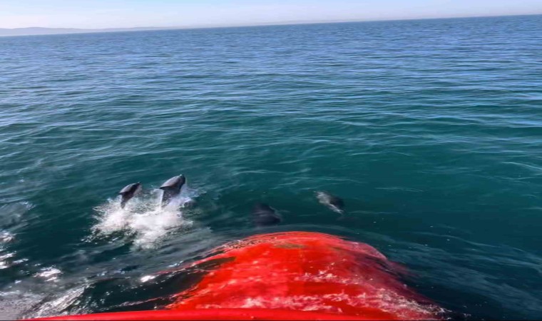 İstanbul ve Çanakkale Boğazlarından geçen gemilerle eşlik ederken görülen yunus sürüleri bu kez Marmara Adası’ndan Tekirdağ’a giden arabalı vapura eşlik ederken görüntülendi. Vapur’un burun kısmında onunla adeta yarışırcasına suyun üzerine zıplayarak ilerlemesi izleyenleri kendine hayran bıraktırdı. Bir süre gemiye eşlik eden yunus sürüsü cep telefonu kamerası ile kaydedildi.