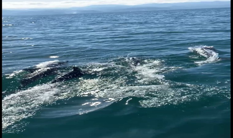 Giresun’un Bulancak ilçesinde balık tutmak amacıyla denize açılan amatör balıkçılar, tekneyle yarışan yunus sürüsü ile karşılaştılar.