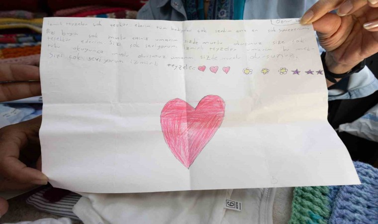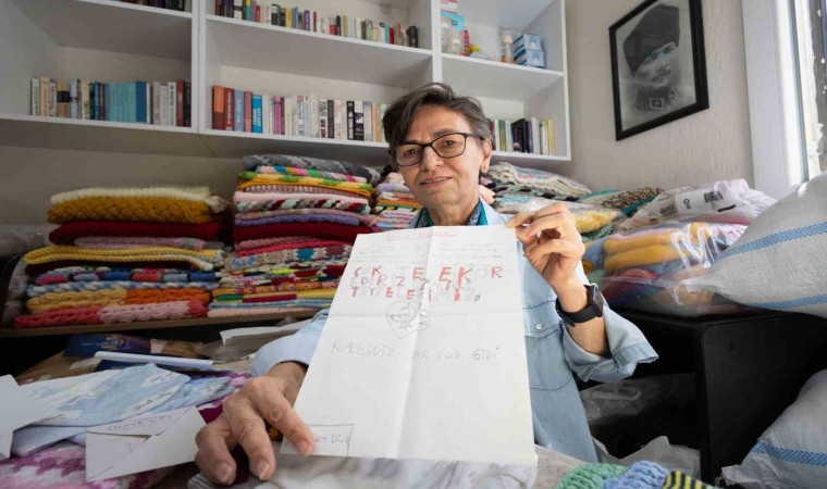 Mukaddes Çevik (63), 7 sene önce sosyal medyada tanıştıklarını ve çocuklara hediyeler gönderdiklerini söyledi. Çevik, “Biz hanımların en çok sevdiği örgüyü yapıyoruz. Bu örgülerin yerine ulaşması için, çocuklarımıza hediyeler hazırlıyoruz. Sosyal medyada tanıştık arkadaşlarla ve 7 senedir yapıyoruz. Her çocuk için ayrı ayrı hediye paketleri hazırlıyoruz; ayrıca devlet hastanesinde, köylerdeki bebekler için de bebek setlerimizi hazırlıyoruz. Tamamen gönüllü bir grubuz; hiçbir yerle bağlantımız yok, vakıf, derneklerle hiçbir ilişkimiz yok. 28-30 bine yakın çocuğumuzu hediye paketi hazırlamışız 7 sene içinde. Teyzelerimiz evlerinde örüyorlar, bize iletiyorlar. Biz de ihtiyacı olan yerlere ulaştırmaya çalışıyoruz. Bu işin mutfağında 15 teyzemiz var; ama diğer gönüllü teyzelerimin sayısı konusunda bir fikrim yok. Bize İzmir dışından da çok destek geliyor; farklı illerden, ilçelerden destek geliyor. Ankara’dan örgüler geliyor, İstanbul’dan örgüler geliyor. Bunların sayısını bilmiyorum. Sosyal medya aracılığıyla ulaşıyorlar. Ben telefonumu herkese veriyorum. Bizim köy okullarımıza gönderdiğimiz hediyeleri alan çocuklar, mektup yazıyorlar. Herkese dağıtıyorum ve evinin bir köşesine asıyor onları. Onlar ilham veriyor, güç veriyor, cesaret veriyor. ‘Hadi yap, ör’ diyor. Biz bu ülkenin çocuklarını çok seviyoruz. Geleceğimiz onlar bizim” dedi.