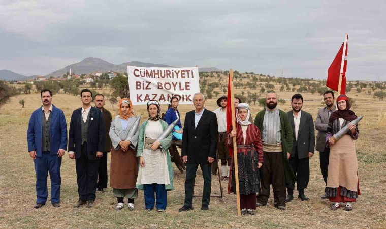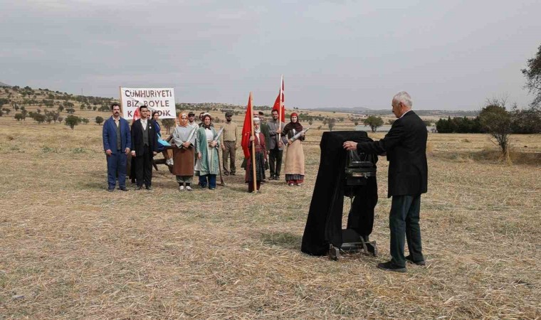 Uşak’ın ilk fotoğrafçısı ve milli mücadeledeki birliği en iyi yansıtan “Cumhuriyeti biz böyle kazandık” fotoğrafını çeken Hüsnü Kazım Özler’in oğlu Mustafa Özler ise fotoğraf makinesinin başına geçerek babasını canlandırdı.