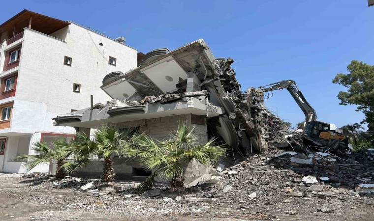 Hatay’da kontrollü olarak iş makinesiyle yıkımı esnasında başka bir binanın üzerine devrilen 5 katlı binanın yıkımı sorunsuz olarak tamamlandı.