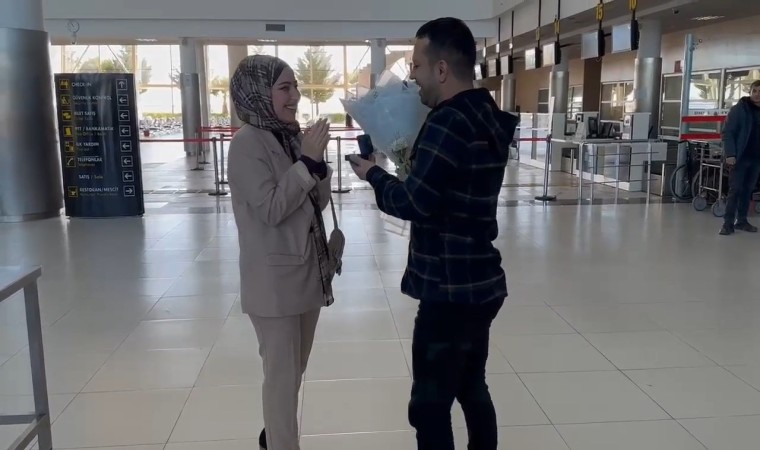 İsveç’te yaşayan bir kişi Adıyaman Havalimanı’nda kendisini karşılamaya gelen kız arkadaşına anons ile evlilik teklif etti.