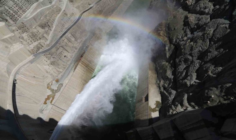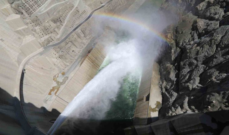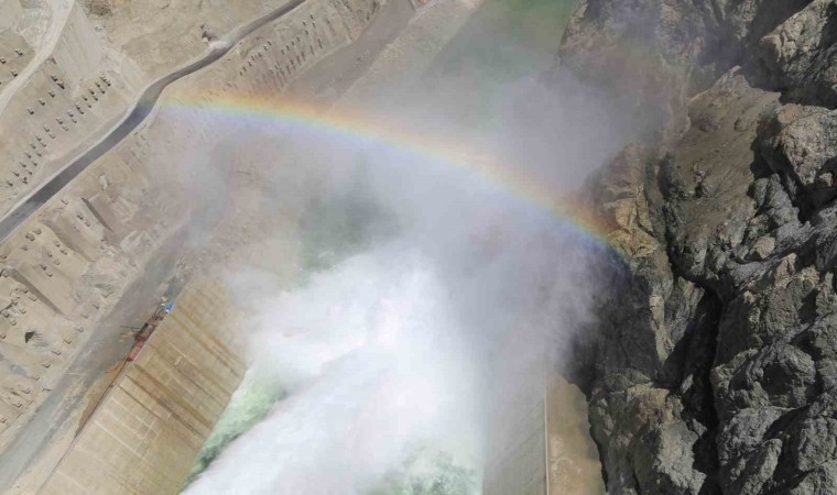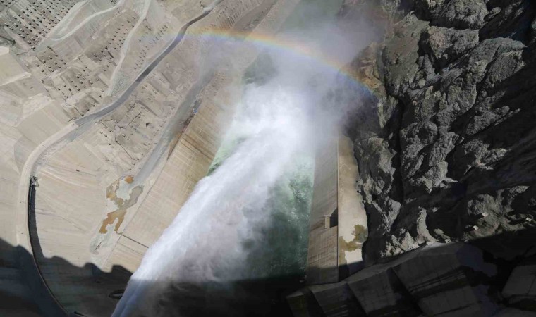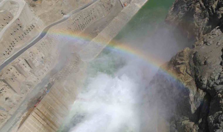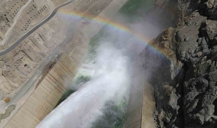 Havaların sıcak olmasıyla basınçlı bir şekilde baraj gövdesinden çıkan sulara gökkuşağı oluşturdu. Baraj gövdesinde oluşan gökkuşağının farklı tonları suyun akıntısına eşlik etti.